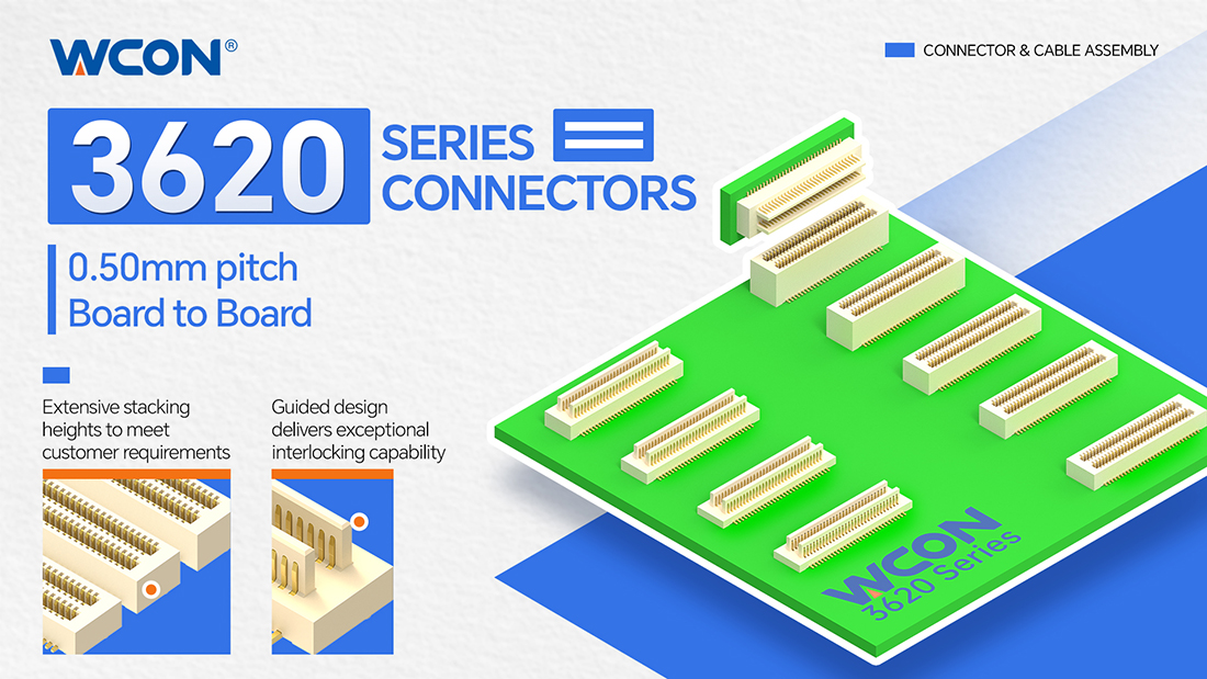 As industrial equipment continues to evolve toward miniaturization and high integration, demands for space utilization and mating reliability in board-to-board connectors have intensified. WCON's 3620 Series is an ultra-compact board-to-board connector featuring a 0.50mm pitch. Its dual-slot design accommodates various circuit sizes and stacking heights, offering flexible adaptation to compact design requirements.
