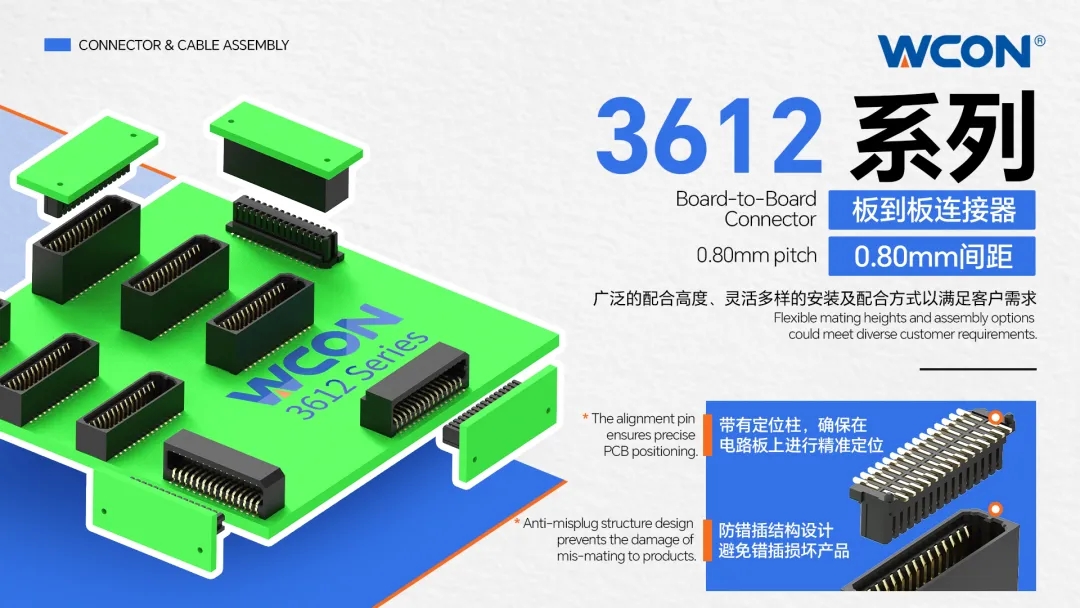 産業自動化の安定した神経系から新エネルギー車両の強力な脈動まで、データセンターの高速経路から太陽光蓄電のエネルギーのネクサスに至るまで、接続は知的世界の基盤言語であり続けています。WCON Electronicsはこの分野に専念し、精密基板間、ワイヤー・トゥ・ボードコネクター、ケーブルアセンブリの研究開発と製造を専門としています。信頼性が高く効率的かつカスタマイズされたソリューションを通じて、私たちは静かに多くの業界におけるイノベーションと運営を支援しています。
