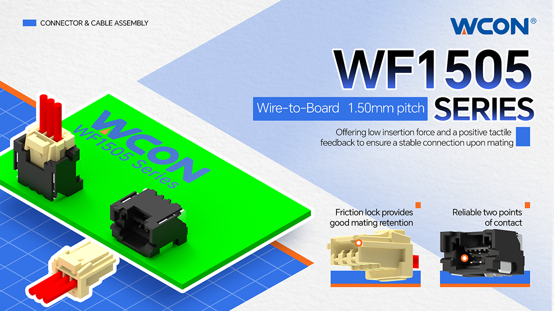 電子機器の小型化・モジュール化が進むにつれ、コネクタの安定性に対する要求も高まっています。WF1505シリーズ は、1.50mmピッチの圧着タイプの電線対基板コネクタで、低い挿入力と独特の触感が特徴です。アンチミスプラグ構造と組み合わせることで、正確な位置合わせと安定した接続が保証されます。